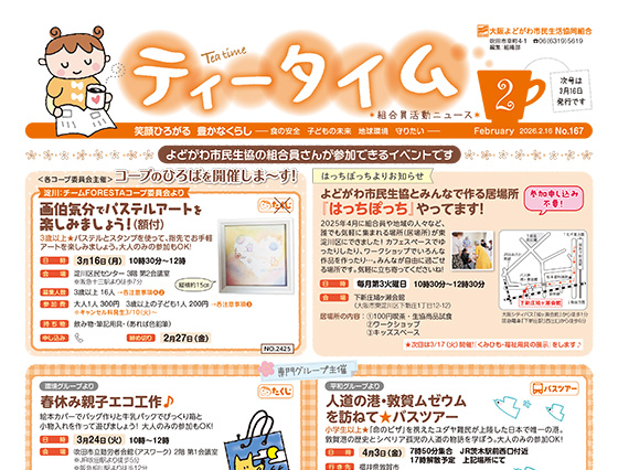 発行物「機関紙よどがわ」「ティータイム(イベント情報紙)」、組合員活動ブログ、くらしの助け合いの会『ほのぼの』 など