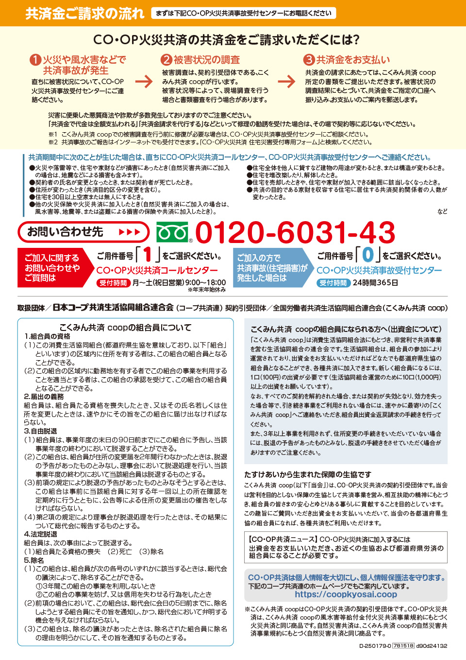 契約引受団体/日本コープ共済生活協同組合連合会 CO·OP共済は個人情報を大切にし、個人情報保護法を守ります。
