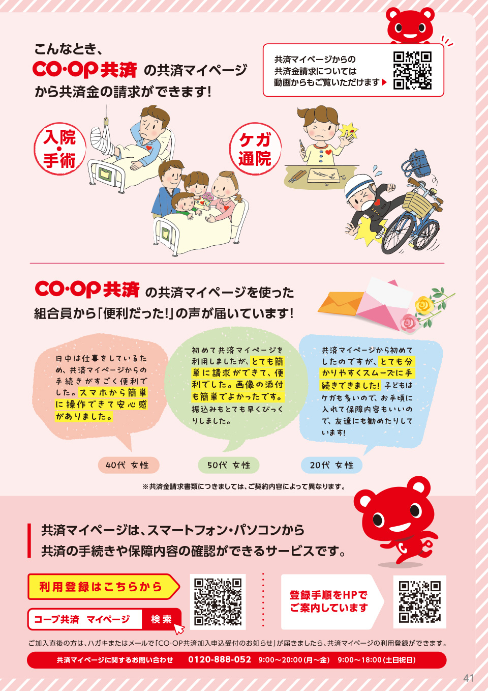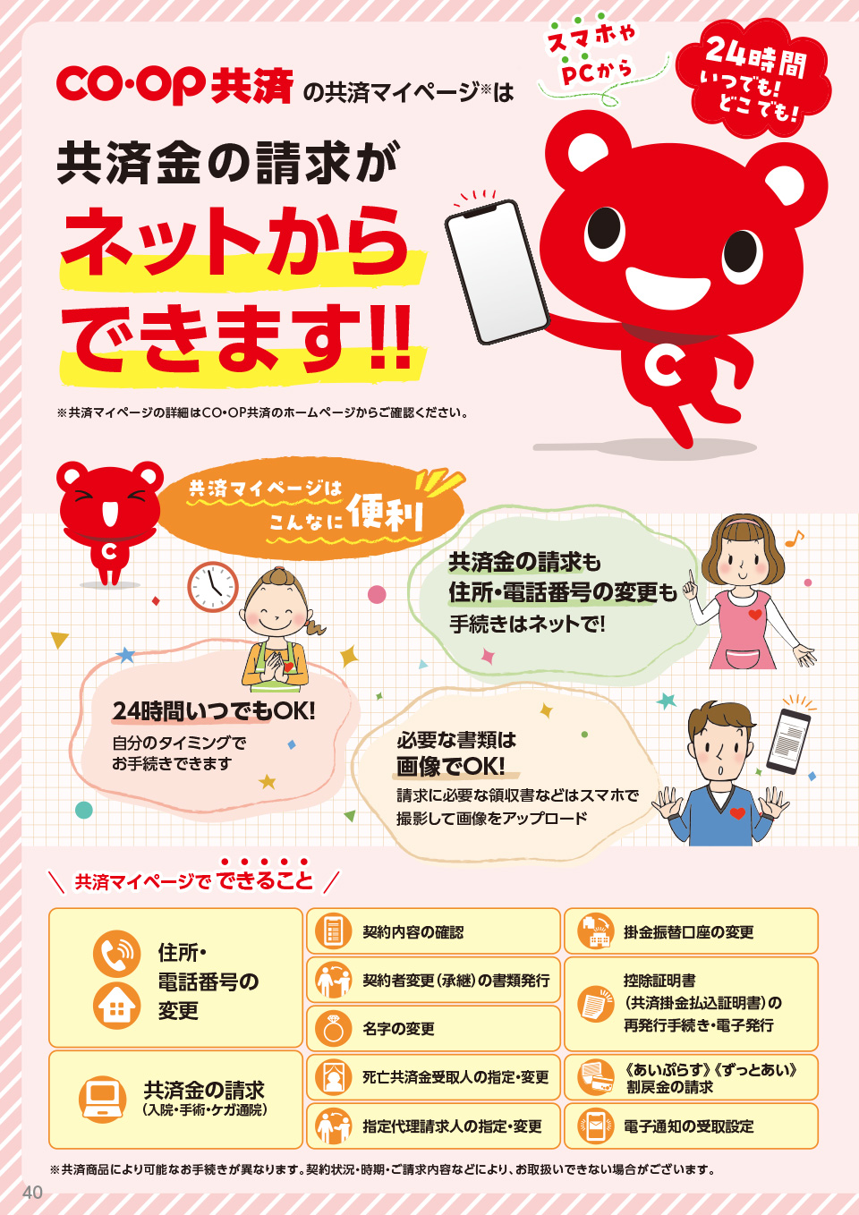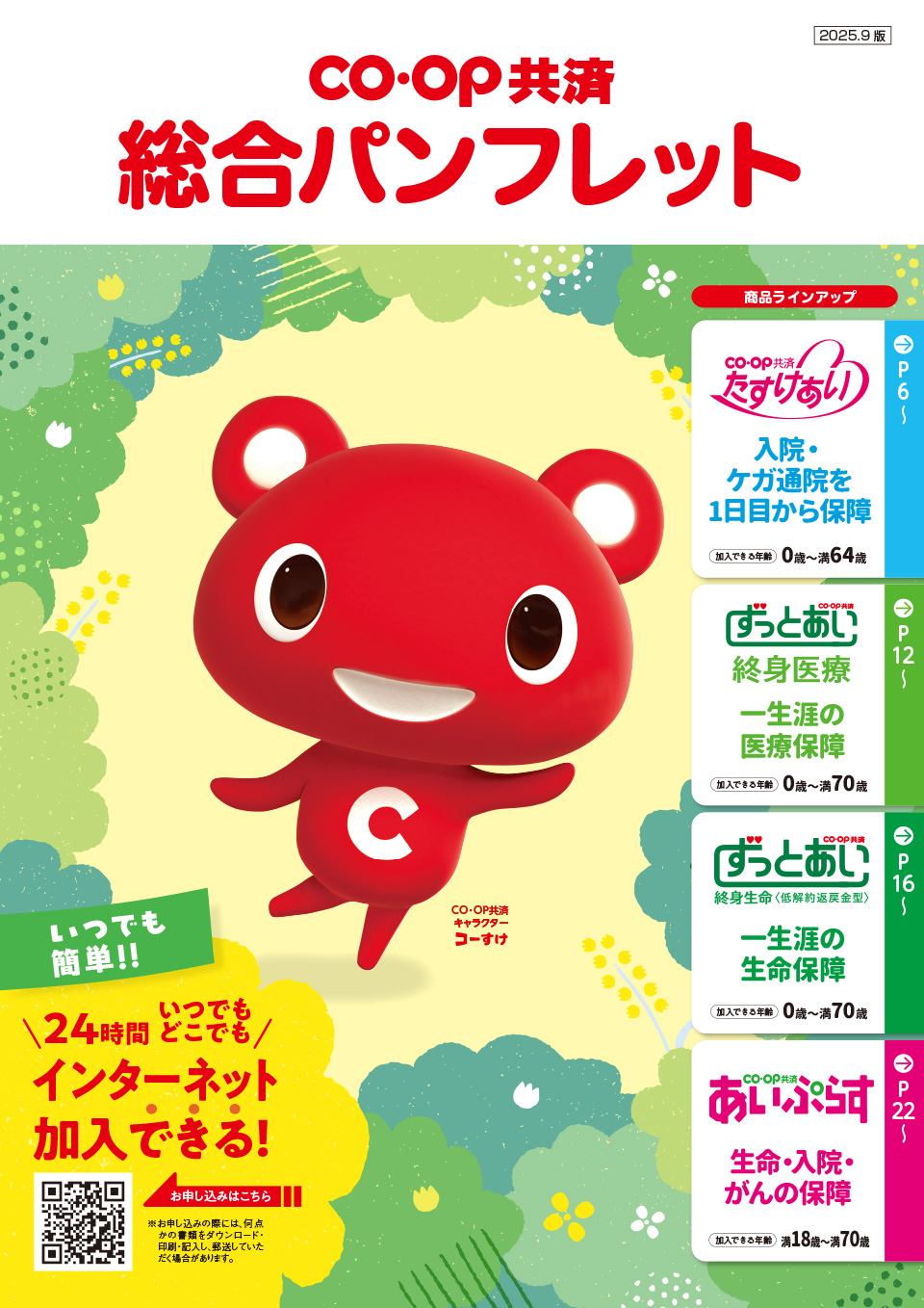 契約引受団体/日本コープ共済生活協同組合連合会 CO·OP共済は個人情報を大切にし、個人情報保護法を守ります。