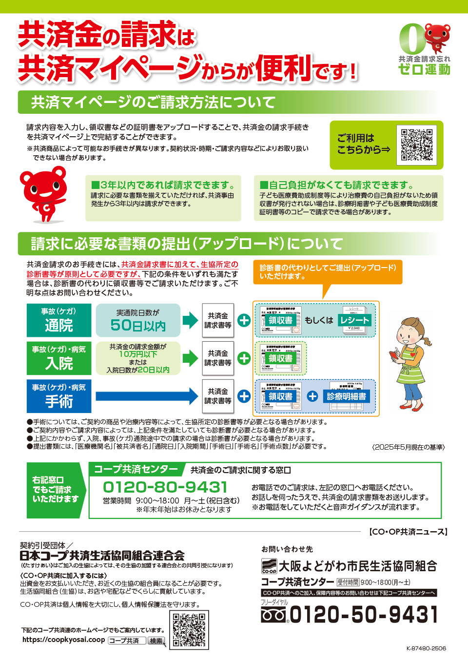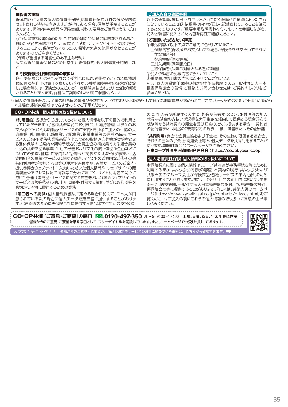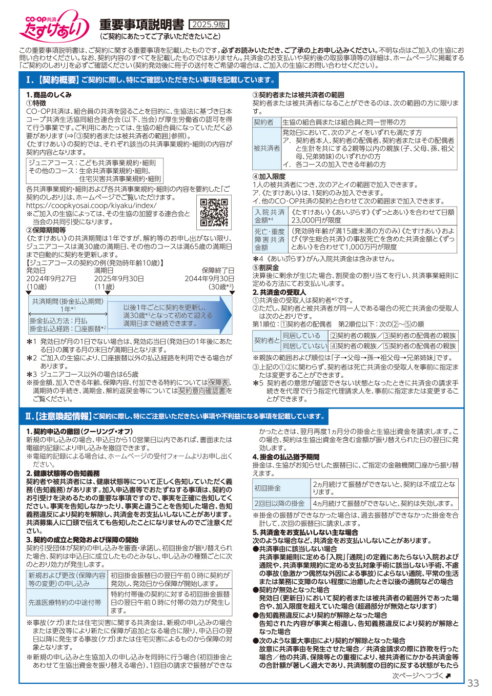 契約引受団体/日本コープ共済生活協同組合連合会 CO·OP共済は個人情報を大切にし、個人情報保護法を守ります。