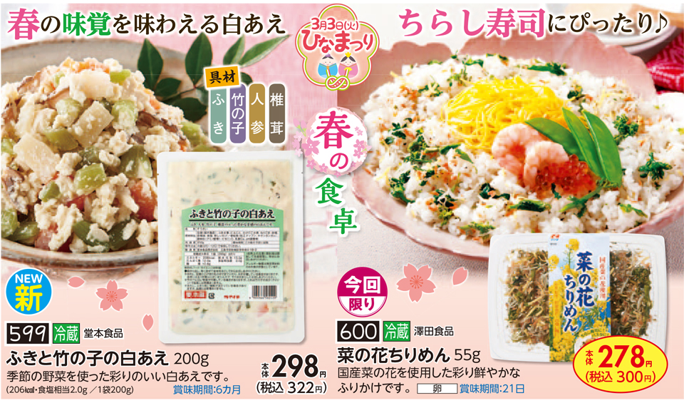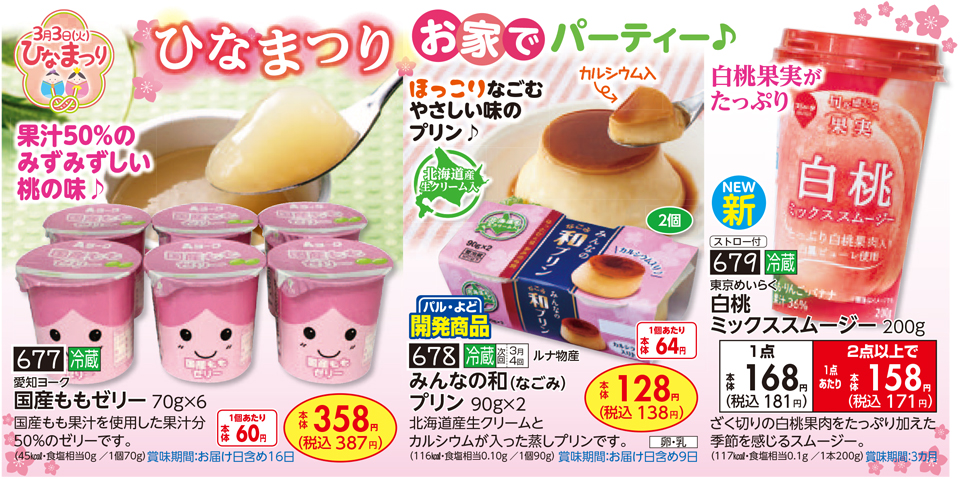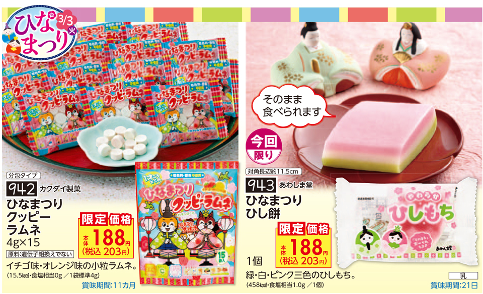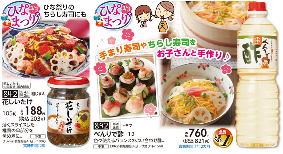 今回2月4回企画では、その他「ひなまつり」にちなんだ商品を多数取り揃えています。