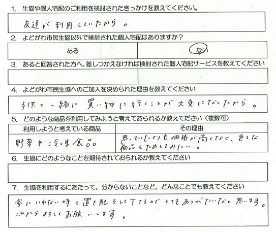 Q.よどがわ市民生協へのご加入を決められた理由を教えてください。