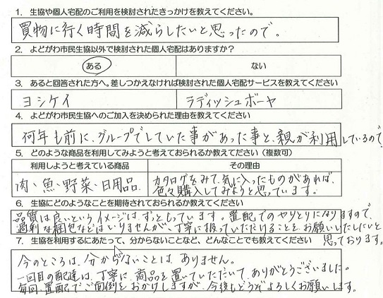 Q.よどがわ市民生協へのご加入を決められた理由を教えてください。