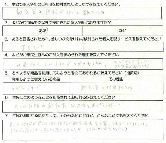 Q.生協にどのようなことを期待されておられるか教えてください。