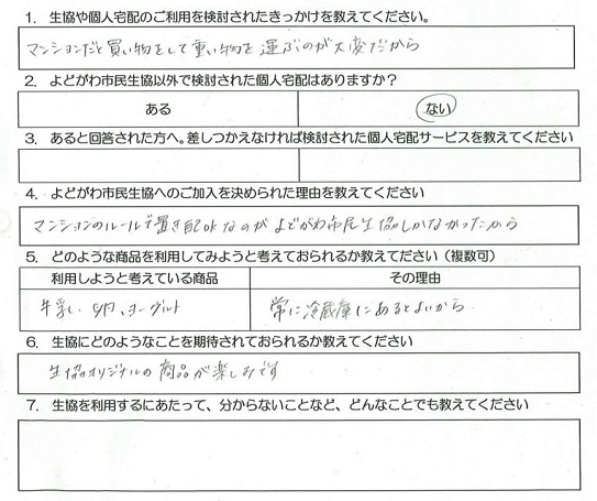 Q.よどがわ市民生協へのご加入を決められた理由を教えてください。