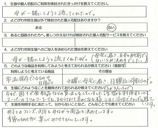 Q.よどがわ市民生協へのご加入を決められた理由を教えてください。