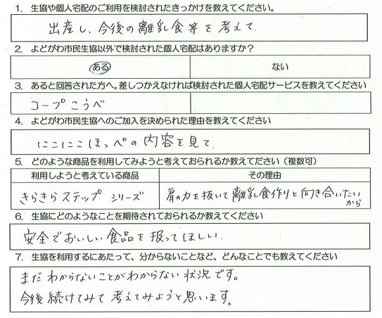 Q.生協にどのようなことを期待されておられるか教えてください。