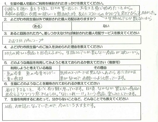 Q.生協にどのようなことを期待されておられるか教えてください。