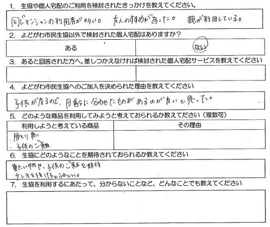 Q.よどがわ市民生協へのご加入を決められた理由を教えてください。