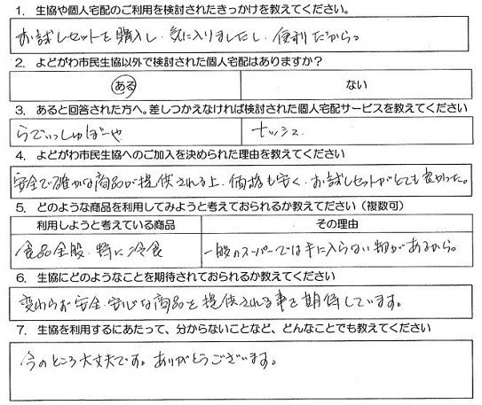 Q.よどがわ生協以外で検討された個人宅配はありますか?
