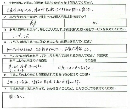 Q.生協にどのようなことを期待されておられるか教えてください。